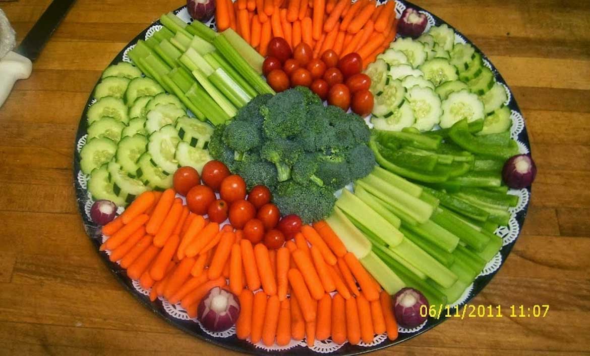 A variety of fresh garden vegetables including broccoli, grape tomatoes, celery, cucumbers and carrots